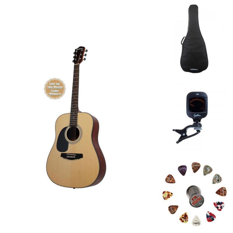 Guitare Acoustique EAGLETONE Pack Riverside LH Naturelle + Accessoires Gaucher : Ce pack contient :, Une guitare folk Eagletone Riverside LH Naturelle, Une housse Woodbrass FGB20, Des médiators Eagletone Celpick - Pack de 12, Un accordeur Eagletone CT50, guitare folk Eagletone Riverside Naturelle Gauchère, Accessoire indispensable du guitariste, les médiators Eagletone sont disponibles en celluloid ou nylon de différents calibres et coloris. Bien finis, les extrémités polies permettent des attaques définies. Ils sont livrés par 12 ou 24 pièces panachées pour tester et trouver le médiator qui vous convient.,