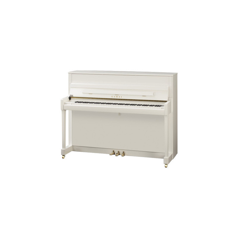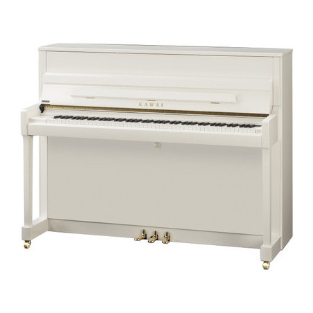 Piano KAWAI K-200 WH/P : Piano droit, Toucher Millennium III avec pièces ABS de carbone de stabilité et de force inégalée, Noyau du marteau en acajou, Pupitre: 100 cm, Couvercle du clavier, 88 touches, 3 pédales, Dimensions (LxHxP): 114 x 149 x 57 cm, Poids: 200 kg, Finition: blanc brillant.