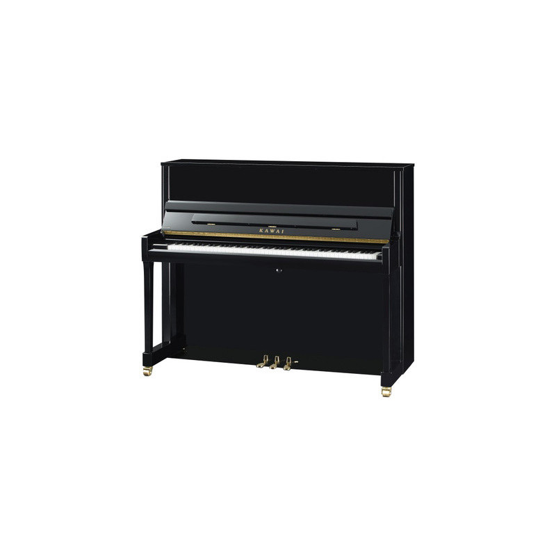 Piano KAWAI K-300 E/P : Piano droit, Toucher Millennium III avec pièces ABS de carbone de stabilité et de force inégalée, Noyau du marteau en acajou, Retour, Pupitre: 100 cm, Couvercle du clavier, 88 touches, 3 pédales, Dimensions (LxHxP): 122 x 149 x 61 cm, Poids: 227 kg, Finition: Noir poli.