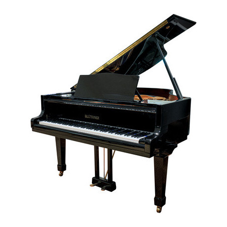 Piano BLUTHNER Model 10 : Piano à queue. Instrument d'occasion - entièrement révisé, Année de construction: 1982, Graves pleins et aigus doux, Equipé du système breveté Blüthner-Aliquot, Longueur: 166 cm, Largeur: 149 cm, Finition: Noir poli, Qualité supérieure fabriquée en Allemagne, Banc de piano incl.