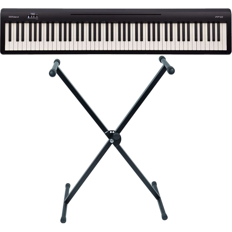 Le piano numérique ROLAND Pack FP-10 Stand procure des sensations agréables grâce à son clavier PHA-4 Standard à 88 touches, et vous propose de magnifiques sons de piano SuperNATURAL avec ses haut-parleurs de qualité. Grâce à sa conception portable et compacte, le FP-10 est l’instrument idéal pour jouer à la maison, que vous travailliez votre technique dans votre bureau ou donniez un récital dans votre salon. Et grâce à sa connectivité Bluetooth et ses puissantes fonctionnalités embarquées, uniques pour un piano numérique dans cette gamme de prix, le FP-10 constitue un second piano idéal pour les pianistes expérimentés., Connectez-vous à la musique grâce au clavier expressif PHA-4, Jouer du piano est une affaire de nuances.