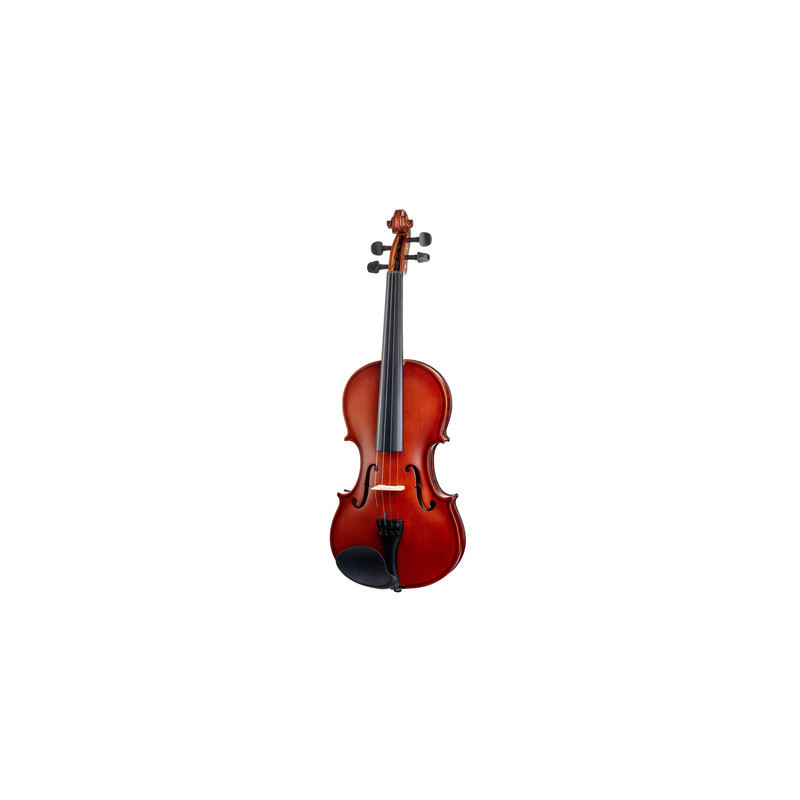 Violon STARTONE Student I Violin Set 4/4 : Set violon 4/4. Table en épicéa laminé. Fond en érable laminé. Manche en érable. Touche en bois dur ébonisé. Chevilles en bois dur. Mentonnière. Cordier en aluminum avec vis d'accordage fin. Cordes en acier. Etui et archet en bois avec baguette anguleuse inclus.
